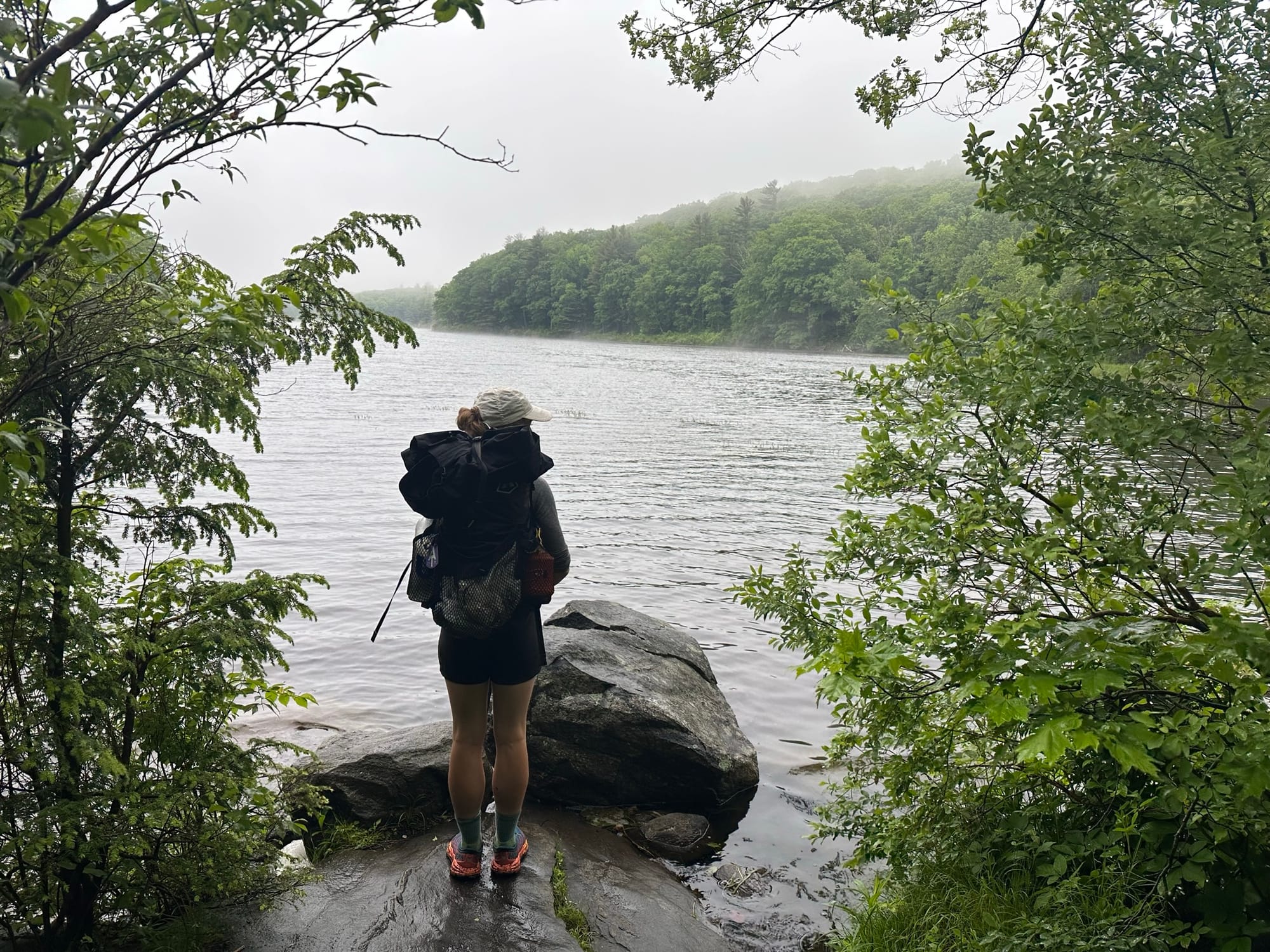 We started the day by sleeping in for the famous pancakes at Upper Goose Pond Cabin, provided by the wonderful caretaker! After breakfast, we headed out with Bambi and Bad Bat, the latter of whom we had just met. Fueled by sugar and strong black coffee (in Instigator and Bambi’s case), we quickly covered miles over the relatively easy grade and terrain of this section of the trail. Along the way, we traded trail stories and observed that a few of the little orange newts were hanging out, but not nearly as many as after the rain. We passed a weird, clear-cut section of forest and numerous swamps, but otherwise did not see much of note. From our quick progress, we made it to the Cookie Lady 2.0’s house a bit after lunch, where her husband treated us to a heaping plate of fresh chocolate chip cookies and homemade lemonade with hibiscus. We also got to meet Bonnie, their absolutely adorable and friendly puppy! After our stop off, our group split: Bambi walked on ahead, and Bad Bat went into town. Once we were ready, Instigator and I headed out on our own to hike the last 6.5 miles. We kept our accelerated pace to beat the impending rain, and we were actually successful this time! Along the way, we didn’t see much, but we did spot a new snake variety we hadn’t seen before. Though I cannot quite recall what it looked like, just that it was different. At Kay Wood Shelter, we caught up with Bambi and then tucked in for an early night of heavy rainfall, eager for our travel day tomorrow to Martha’s Vineyard!