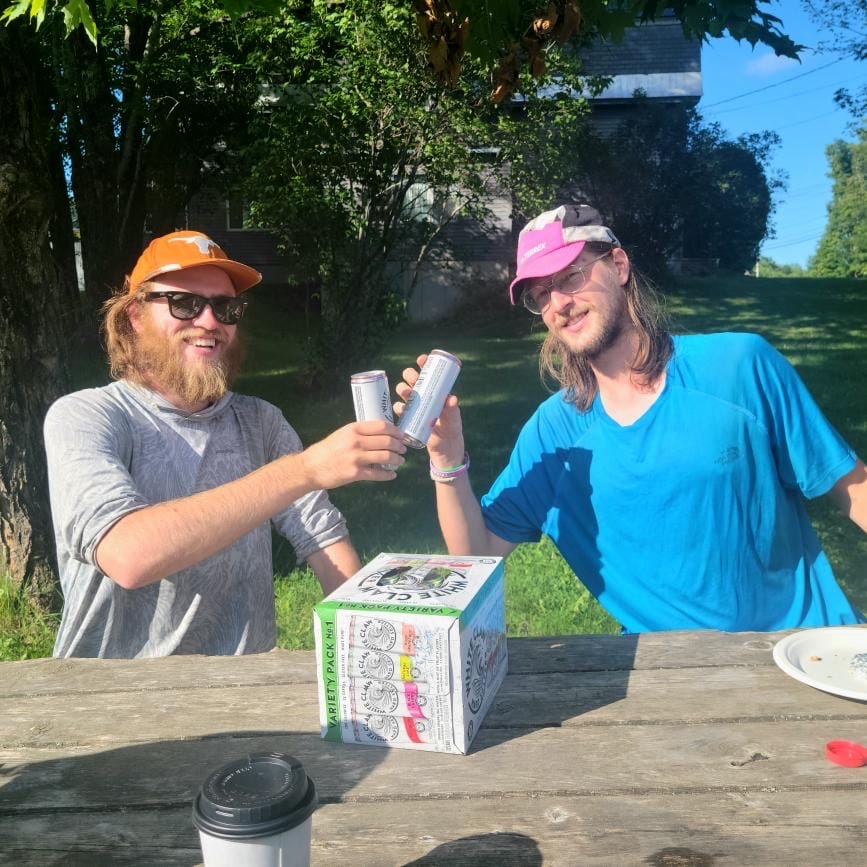 We woke up bright and early with the sun, as we had set up in a meadow with little cover. As a result, the tent was soaked with dew, but that was alright because it was a town day! We quickly packed up with the plan to have breakfast in Monson. Not long after we had hit the trail, Wilder whipped past us but agreed to have breakfast at a gas station in town. Instigator and I then enjoyed our nice cruisey 3 mile forest road walk into town, thankful that we had decided to take the old route, as it really was gorgeous. We passed massive meadows full of wildflowers along the bank of the Piscataquis River and checked out the little old township of Blanchard, complete with old hand-sawed wooden buildings. Just before we rolled into Monson, we were rewarded with another wonderful view of Lake Hebron as we walked along its bank. Around 7 am, we caught up to Wilder at the gas station and then split a case of White Claws along with some delicious breakfast sandwiches to celebrate making it to the last trail town.