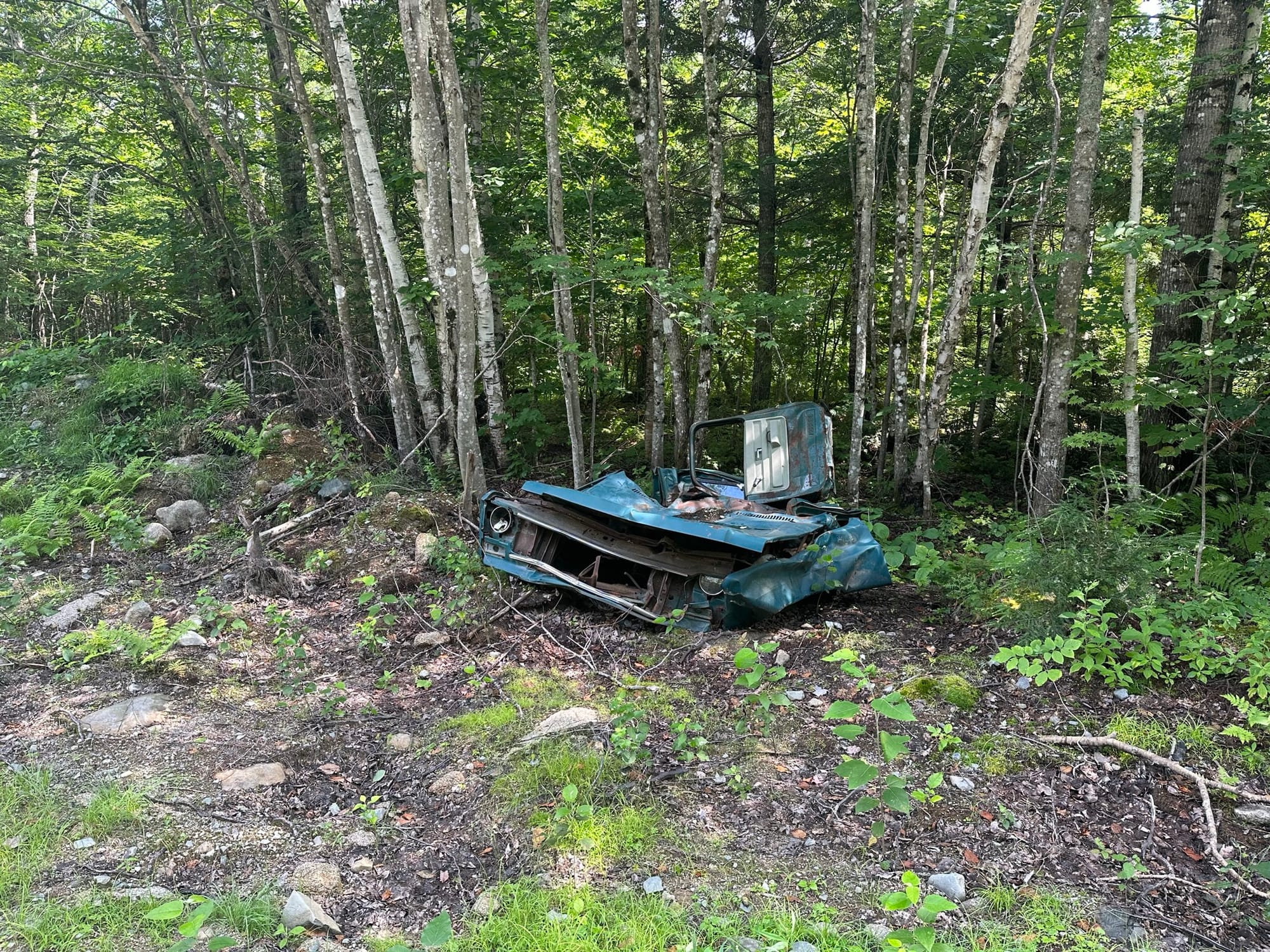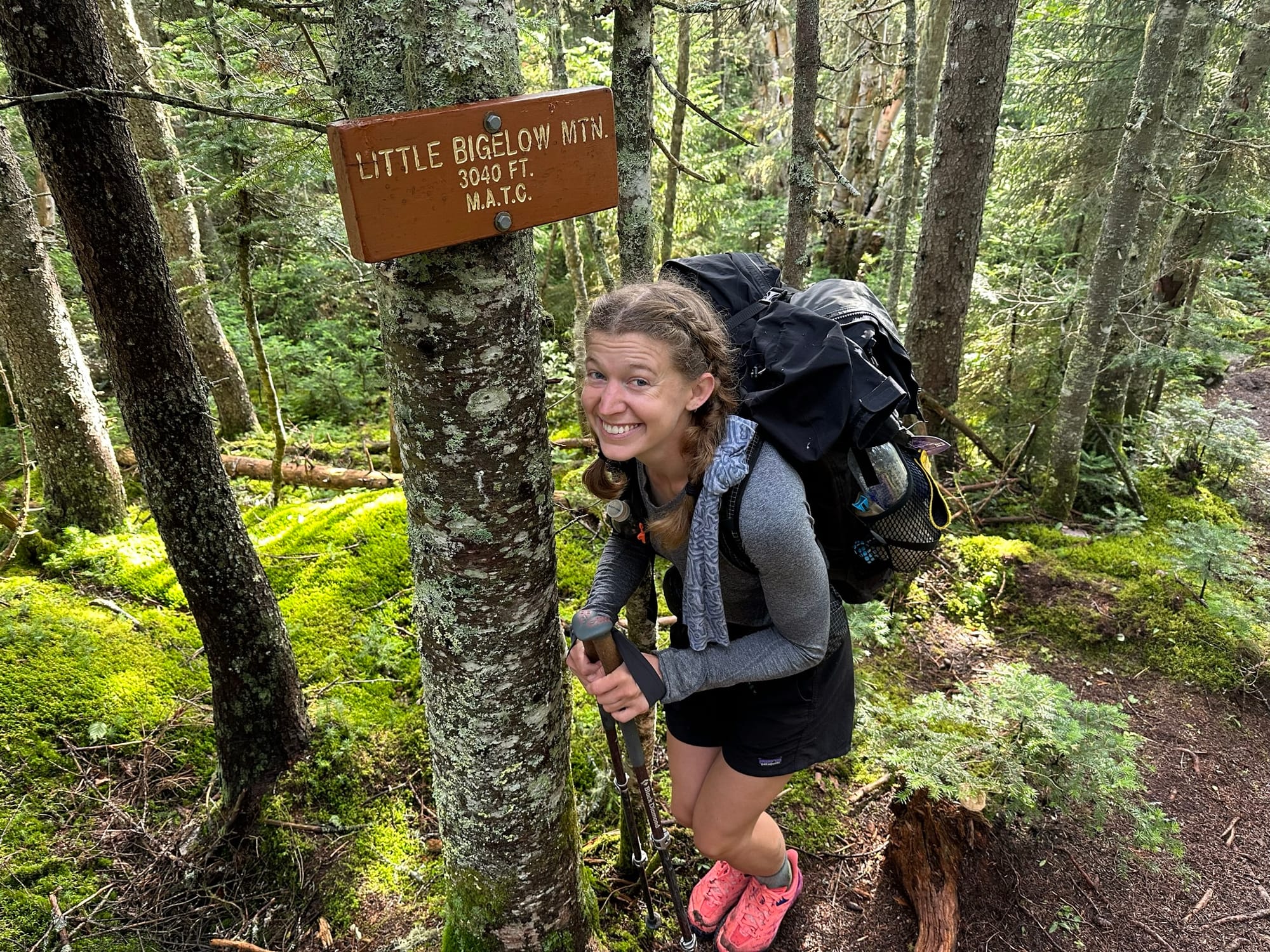 Once we finally caught a break between storms, the 3 of us left the shelter with Wilder jogging to get over Moxie Bald and Instigator and me speed walking. Fittingly, we took the “bad weather bypass” as we did not want to get struck by lightning this close to the finish line. The bypass was still fairly exposed, though, but it had gorgeous views of blueberry patches and Bald Mountain Pond down below. Once we got down, it was buggy, and the trail was washed out. We stopped briefly at Bald Mountain Pond for a snack and to ask sobos about the trail conditions into Monson. According to them, the river crossings were swollen, and the trail had been reduced to miles of mud. Armed with that information, we decided to follow Wilder’s route. We trudged along the trail for a couple more miles before splitting off to follow Bald Mountain Stream Road, and this wild network of logging roads it connected to. We stopped briefly to make dinner, which was cut short by voracious mosquitoes, but otherwise continued into the darkness. At some point, we passed what we guessed was Wilder’s tent, but kept going until around 10:30 pm. We hadn’t quite made it into Monson, but we had a nice, long day and had made some serious distance despite the weather.
