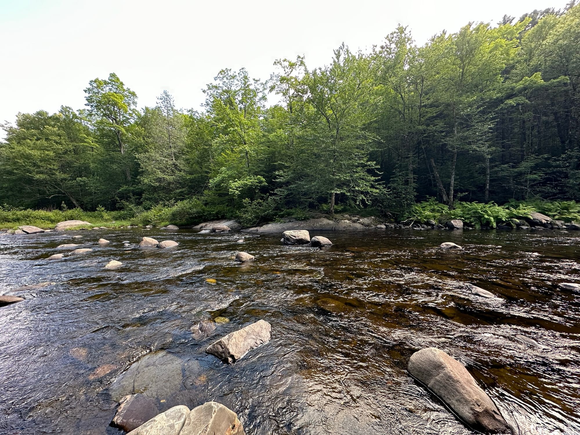 When we woke up at 4 am, the weather was still horrible, and hail was once again falling… We made the call to sit tight and wait it out, but we anxiously stayed awake. Blissfully, it finally broke, so we headed out around 5:30 am. Since it was dark, we couldn’t see much, but we still made good time to the East Branch Lean-to, where we stopped for a quick snack since the inhabitants were already awake. The two people staying there relayed a hilarious story to us about how a couple had been staying in the shelter with them to ride out the storm. But when everyone had gone to sleep early, the wife of the couple had woken up the older gentleman there to tell him that he snored too loudly for the shelter. Since he didn’t get up and leave, she made her husband set up their tent in the storm, and they both moved into their soggy tent. It’s wild how even this far north, we still encounter entitled hikers who think they have a special right to a shelter!