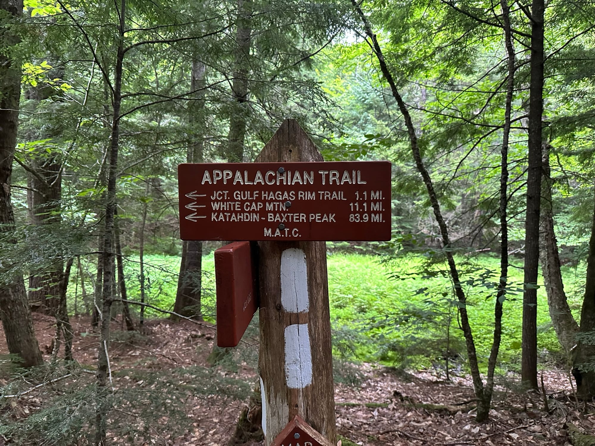 Despite our incredibly long day and late night yesterday, we still woke up fairly early out of habit and excitement. We would exit the 100 Mile Wilderness today and get our first view of Mt. Katahdin! We had a fairly light breakfast, since we were just about out of food, before setting off across the questionable log bridge that spanned Rainbow Stream. From there, we encountered a few flooded sections of trail, and then caught the gorgeous sunrise reflecting off the Rainbow Deadwaters. The trail continued through muddy/buggy sections, but with wonderful views of Rainbow Lake for several miles before we climbed up to Rainbow Ledges. I had gone on ahead of Instigator a bit since we were both listening to podcasts and the weather was wonderful, so I was quite shocked when I came up around a bend and was greeted by the incredible view of Mt. Katahdin. Wanting to share the moment with Instigator, I found a shady spot to escape the sun and sat down to take in the views. In the distance, I could clearly see White Cap Mountain and a few of the other peaks where we had come from. It was at about this moment that it hit me that the journey was coming to an end. The last few weeks since the start of Massachusetts had honestly been hell due to the weather. I hadn’t really had time to reflect much on what we were doing, and I had lost track of things a bit. In fact, most of these journal entries since that point in time were written in shorthand notes, which I’ve gone back and expanded on. So when I sat down here in this spot, it hit me like a load of bricks, and I had a bittersweet cry. Happy for how incredible the journey had been, for the wonderful people I had met and fallen in love with, and for the unique experiences and challenges I had endured. At the same time, it was incredibly sad that it was all coming to a close. Instigator and I will almost certainly spend long periods apart while we figure out how to build a life together, I very likely will never see or hear from some of my trail friends ever again, and I will never be able to capture the incredible feeling of thru-hiking for the first time.