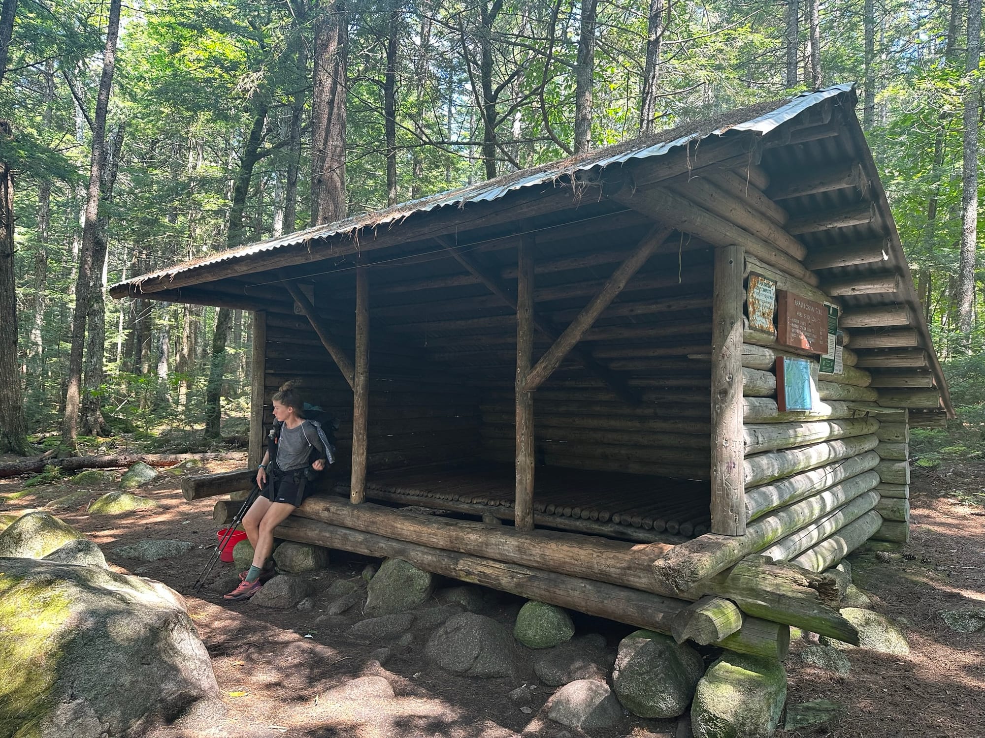 Once we arrived, we ran into a familiar face in the form of The Price is Right! He was the first very familiar face we had seen since coming back on the trail after our trip to Martha’s Vineyard, and it was a delight getting to catch up with him while we waited for the ferry. Once it was our turn, we hopped into the canoe and discussed with the guide how weird it is that there are so many river crossings without permanent safe solutions. Once across, we said goodbye and then hitched to Sterling Inn with Price is Right. We decided to have lunch there and let our stuff dry out while lounging in the sun. Price was staying there for the night, but since it was still early in the day, we decided to get a few more miles in. The owner’s son kindly drove us back to the trail, and we cruised the last couple of miles to the Pleasant Pond Lean-to.
