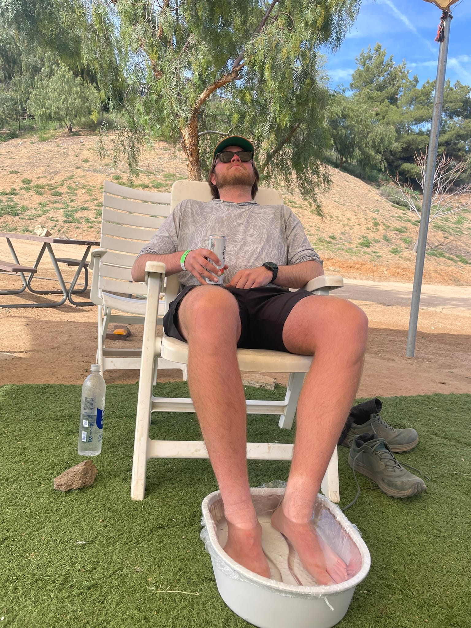 Finally done with chores, I grabbed a White Claw from the fridge and set up in a reclining chair with my feet in an Epsom salt bath. The rest of the day slid by, trading stories with the Australians, chatting with Twig, and several other hikers until it was dinner time. For Bush’s birthday, he had purchased 3 pounds of fajita meat, which we promptly grilled up and consumed. After dinner, Farmer John and Andrea surprised Bush with an Oreo cake! Stuffed and happy, we all called it a night shortly thereafter. Another excellent zero!