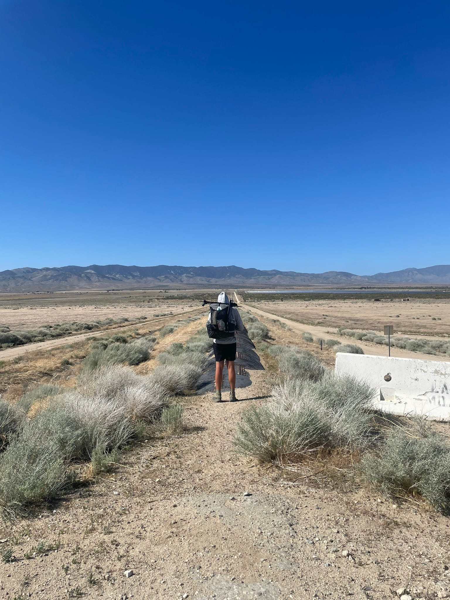After finishing lunch, we called for a ride back and then sat around in what felt like purgatory for a bit. Anna and I tried to hitch, but to no avail. Eventually, the van returned, and we were brought back to Hiker Town. Annoyed that we had wasted so much time at the store, we filled up our water and hit the trail. Immediately, we passed a weird site, a closed elementary school across from a trailer flying a confederate flag… We then walked down the road a bit and began following the famous LA aqueduct.