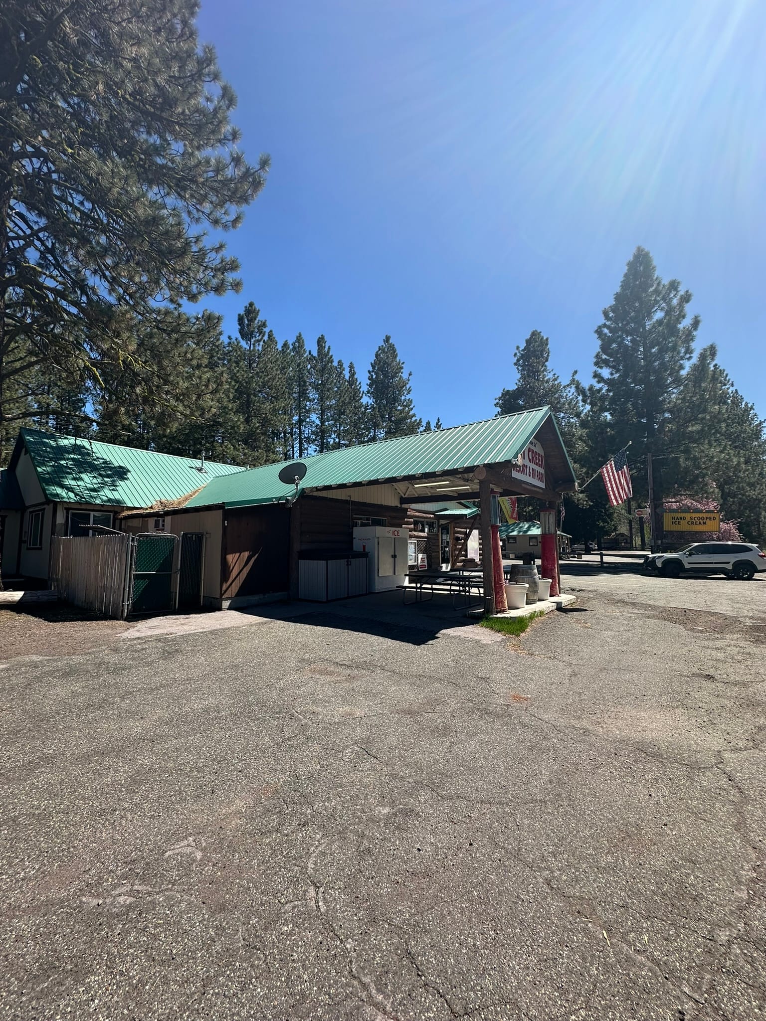 From the boundary sign on, the trail was completely snow free and easygoing. We passed through another large burn scar remnant of the Dixie Fire before descending into a dense pine forest, filled with blooming manzanitas. From there, we continued on the dusty pine duff trail until we arrived at Hat Creek Resort, where we stopped in for ice cream and to dry our tent. A local monk chatted with us about the trail for a bit and expressed that he wanted his monastery to host hikers this season! We then packed up and hiked the remaining few miles into Old Station at mile 1378.8, where we set up for the night behind the Old Station Fill Up. The new owner of JJ’s Cafe gave us the lowdown on showers and laundry, so we finally washed up and enjoyed hot food from the store. Despite being pretty cooked from yesterday, we still clocked a little over 20 miles today! That being said, we’re probably sleeping in tomorrow for pancakes!